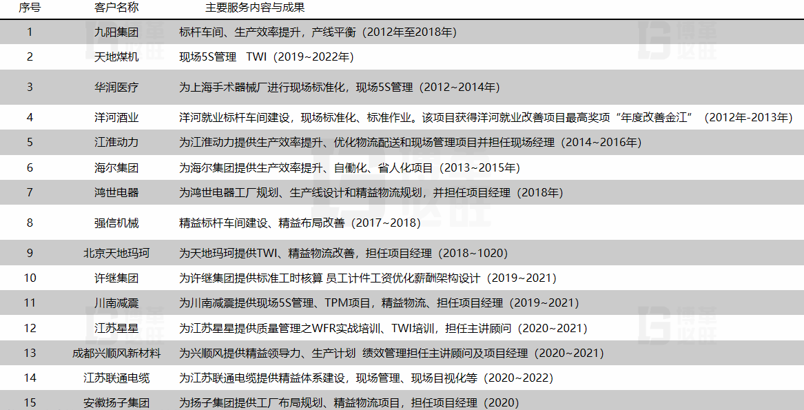 實(shí)戰(zhàn)經(jīng)驗(yàn):結(jié)合豐田(TPS)、丹納赫(DPS)、美的(MBS)等企業(yè)精益系統(tǒng)建設(shè)經(jīng)驗(yàn),為企業(yè)量身訂制精益管理管理系統(tǒng),從制造性企業(yè)管理的基礎(chǔ),現(xiàn)場(chǎng)/效率/質(zhì)量/設(shè)備管理/班組等維度系統(tǒng)提升企業(yè)管理水平,同時(shí)培養(yǎng)精益管理人才;為企業(yè)成功輔導(dǎo)的現(xiàn)場(chǎng)管理、效率管理、流程管理、工廠物流配送項(xiàng)目、工廠生產(chǎn)規(guī)劃等超過(guò)1000個(gè),使全價(jià)值鏈總成本降低30%、制造周期縮短50%、生產(chǎn)效率提升35%、庫(kù)存降低35%、準(zhǔn)時(shí)交付率提升50%,帶來(lái)的直接財(cái)務(wù)收益數(shù)千萬(wàn)元。