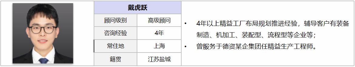 擅長業(yè)務(wù):新工廠布局規(guī)劃、精益布局與物流改善、整體倉儲(chǔ)規(guī)劃、IE改善手法、單元化生產(chǎn)與線平衡分析、精益生產(chǎn)成本降低、精益生產(chǎn)配送管理、精益物流-成套供應(yīng)物料模式、標(biāo)準(zhǔn)工時(shí)開發(fā)、現(xiàn)場6S改善、目視化提升、工廠園區(qū)目視化整體優(yōu)化;