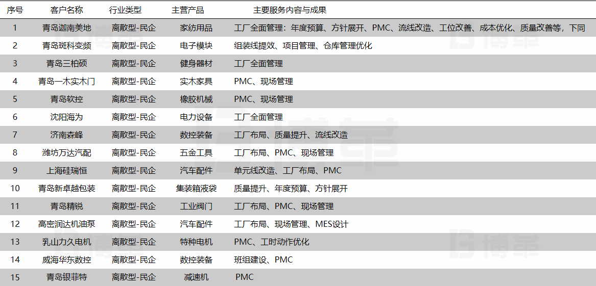 熟悉行業:大型單件的裝備制造業、多品小批的機械制造業、多品小批的家紡制造業、連續型生產的醫藥食品精細化工制造業;