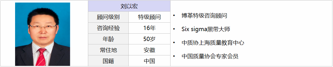 熟悉行業(yè):電子、半導體、制藥、鋼鐵、汽車制造、機械加工等。 擅長業(yè)務:將精益Six sigma方法論與公司戰(zhàn)略流程梳理、質量管理體系、質量信息化應用等相結合。自主編寫了新老QC七大工具、SPC教材、、PPAP、MSA、FMEA、Six sigma綠帶、質量工具箱技術結合Minitab軟件、ISO9000及TS16949內審員等的各類培訓教材。