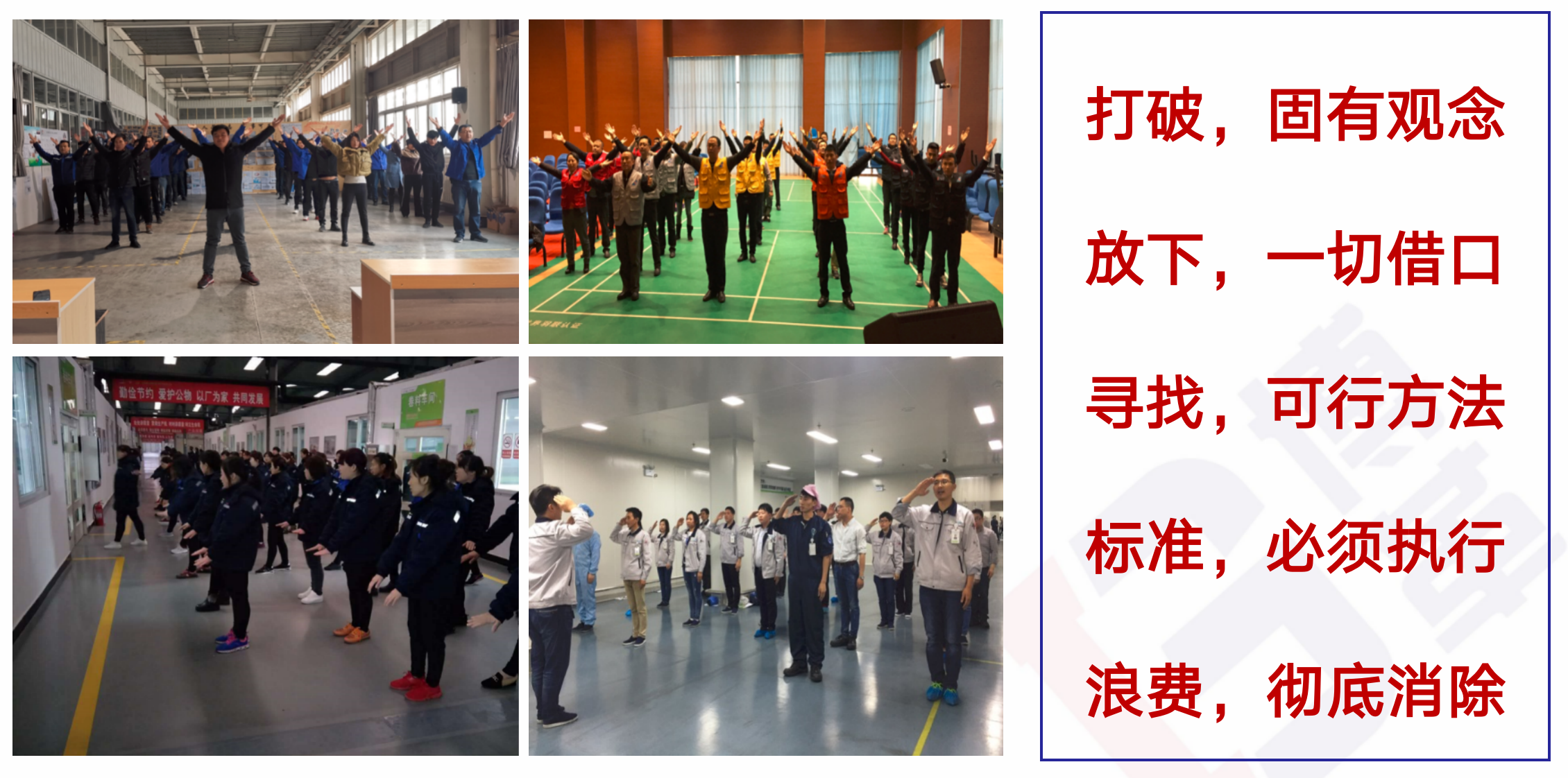 公司的中高層領導、相關部門需給予資源上的支持,培訓倡導者需參加開課儀式和課程總結;培訓小組成員需帶領員工一起改善,形成合員參與的精益氛圍。