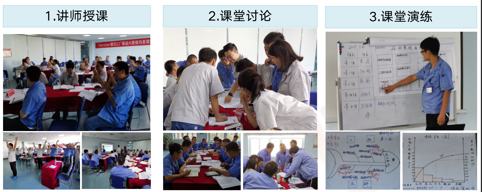 按照“精益五步法”理論課程分為“改善技能類”和“管理技能類”,每月培訓(xùn)1次,每次培訓(xùn)1.5天