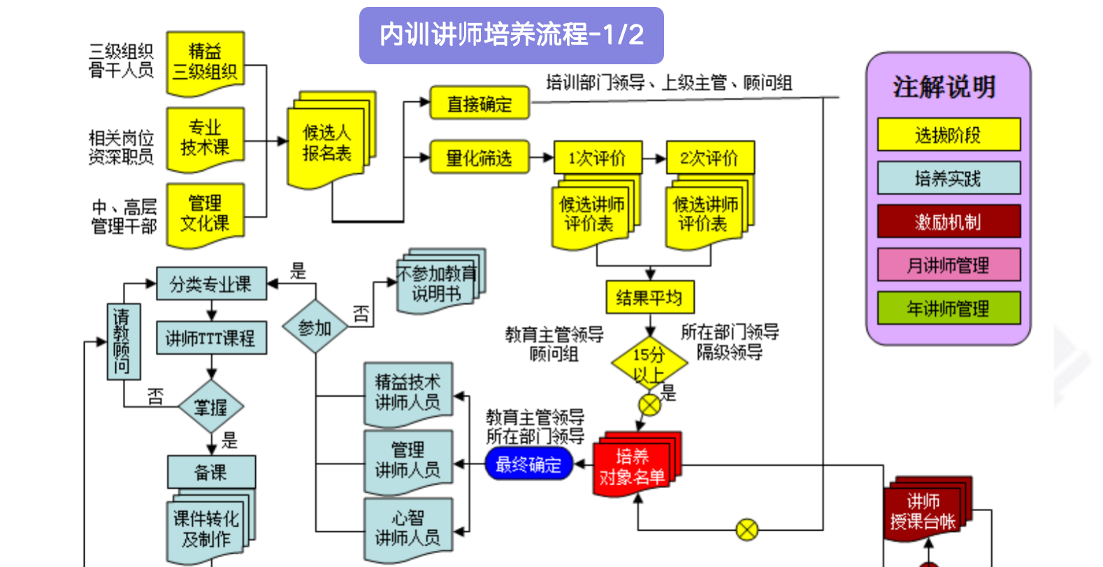 從公司角度建立內(nèi)訓(xùn)師培養(yǎng)與運(yùn)營(yíng)流程(包括講師選拔-講師培養(yǎng)實(shí)踐-講師激勵(lì)機(jī)制-月度講師管理-年度講師管理),與本期的博革咨詢式培訓(xùn)同步培養(yǎng)貴司的種子講師。