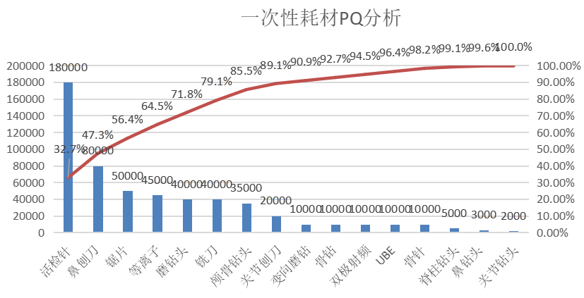 根據(jù)工廠的產(chǎn)品的產(chǎn)品族分析,工廠活檢針類產(chǎn)品的銷量占產(chǎn)品的32.7%,為一次性耗材第一,活檢針,鼻刨刀,鋸片,等離子,磨鉆頭,銑刀,顱骨鉆頭量占比總量的85.5%。