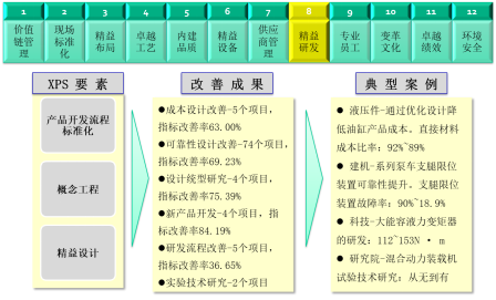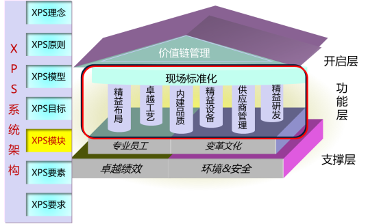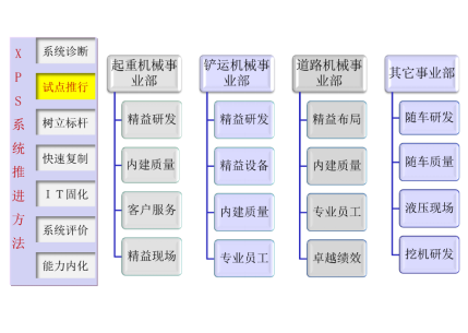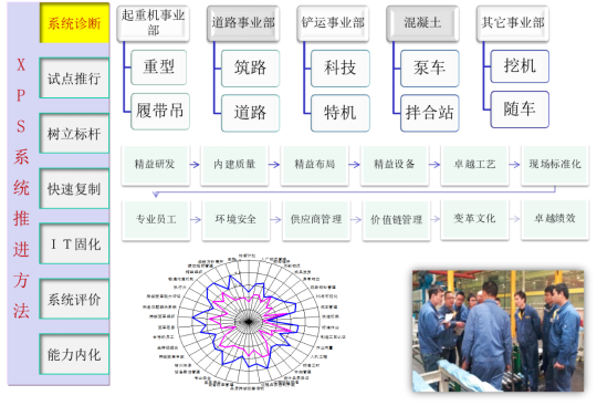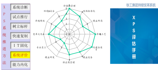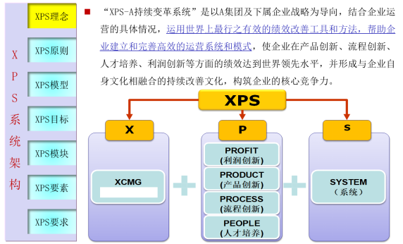 “XPS持續(xù)變革系統(tǒng)”是以集團及下屬企業(yè)戰(zhàn)略為導向,結合企業(yè)運營的具體情況,運用世界上最行之有效的績效改善工具和方法,幫助企業(yè)建立和完善高效的運營系統(tǒng)和模式,使企業(yè)在產品創(chuàng)新、流程創(chuàng)新、人才培養(yǎng)、利潤創(chuàng)新等方面的績效達到世界領先水平,并形成與企業(yè)自身文化相融合的持續(xù)改善文化,構筑企業(yè)的核心競爭力。