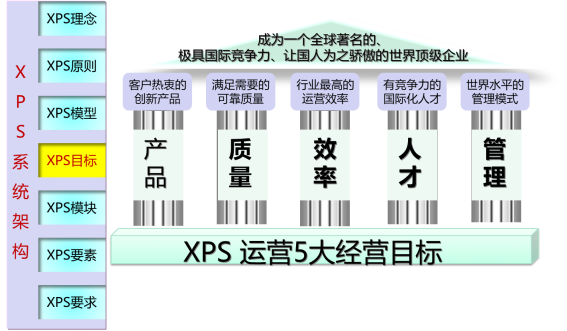 XPS的目標是幫助A成為世界頂級的企業(yè),世界頂級的企業(yè)必須能夠提供客戶認可的世界頂級的產品,滿足各種需要的世界頂級的質量,行業(yè)最高的運營效率,具有競爭力的國際化人才,以及世界水平的管理運營模式