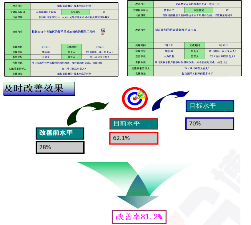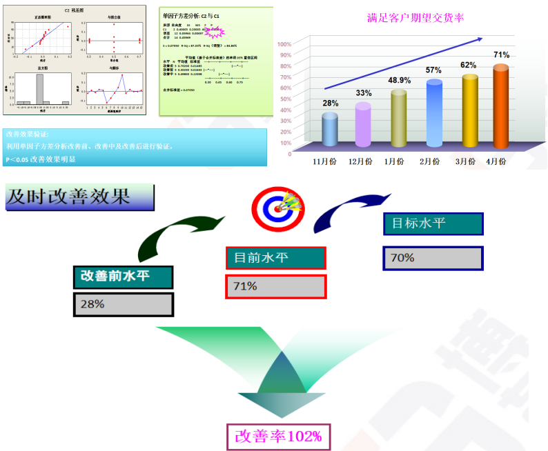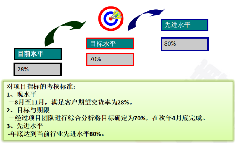我們項目小組經過為期6個月的努力,按照六西格瑪DMAIC的流程,有效的提銷售部、信用部、生產部之間的銜接效率,并取得了優(yōu)異的成績,縮短了公司的運轉周期,客戶期望的交付率由原來的28%提高到71%。 在項目的實施過程中,讓我們對6西格瑪有了新的認識: