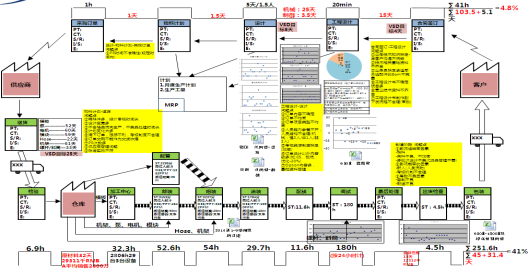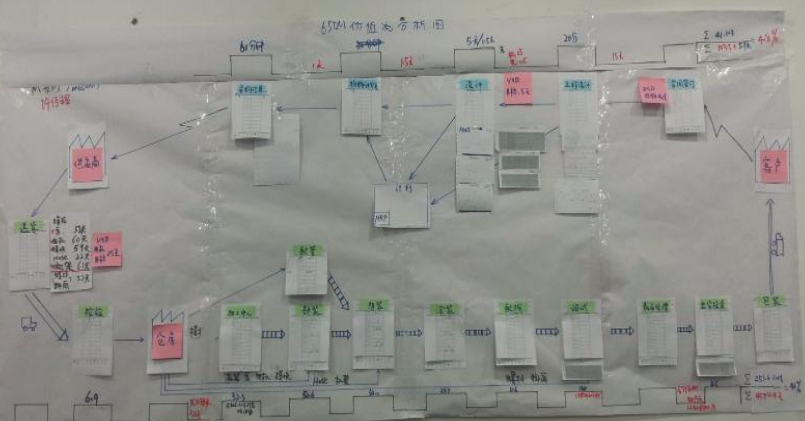 經過價值流分析,M型耗時約60天、超大型約90天,具體各階段過程參數為: