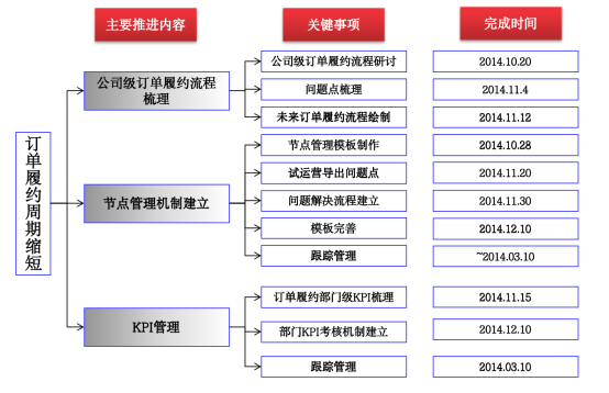 (3)制定項目進度跟蹤關鍵節點表,通過建立共同管理模版、各部門日常更新管理、日清會議協調機制,加強訂單履約過程目標管理。