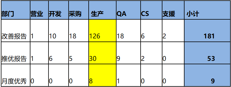 (2)完成各類改善共計181項,革新推優53項,月度評比優秀改善9項。