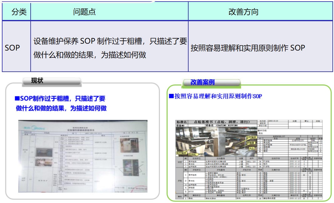 實現一個流生產的目的是降低在制品庫存,使生產中存在的浪費現象暴露出來,并不斷排除,使成本下降,而任何一個問題都會阻礙一個流生產方式的順利進行。順德廣州工廠計劃通過兩方面措施來實現:一是要在沒有庫存的前提下,實現在必要的時刻得到必要的零件,為使各種零件生產和供應同步,統一生產節拍,車間利用作業組合票和偏差調查表工具,發現問題點,并進行整改,著力消除工序內浪費;二是提高過程能力,著力解決排故時間長、信息交流不通暢、工藝紀律差等這些問題,實現作業標準化。