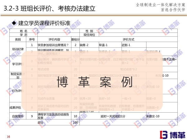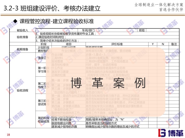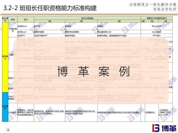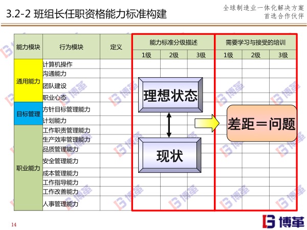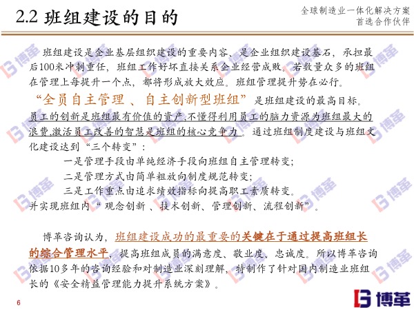 博革咨詢班組長能力培養系統 日期:2017-01-05 / 人氣: / 來源:www.caplook.com / 熱門標簽: 歡迎您訪問博革咨詢官網!博革咨詢是中國首家整合精益生產/六西格瑪/流程再造的咨詢公司,專注于提供 精益生產、6S現場管理、TPM設備管理、精益工廠布局、專業目視化、精益供應鏈、精益研發、六西格瑪管理等綜合性問題解決方案并負責落地實施。 全國咨詢熱線:021-62373515、157-2153-3189 我們承諾:見效快、易復制,目標必對賭! 作者:博革咨詢 制造業班組長能力提升課程大綱← 企業管理中怎樣做好一個會溝通的班組長← 經典案例 Case 上海知名機械廠精益布局案例 汽配行業零部件QCC質量改善案例 家電企業精益布局案例 化工原料儲罐的低成本自動化案例 醫藥物流行業的三級成本核算改善案例 彩印包裝質量可視化管理系統案例 電氣行業精益管理推進案例 小家電行業的全供應鏈精益生產推進模式 相關內容 Related 2022年11月我們要在南京開公益課啦 企業必備的精益生產管理方法 南通某高端戶外安全用品生產企業精益管理咨詢項目正式啟動 無錫某裝備公司精益5S管理案例精華 青島某汽車零部件精益管理改善案例 企業為什么要重視防呆法?